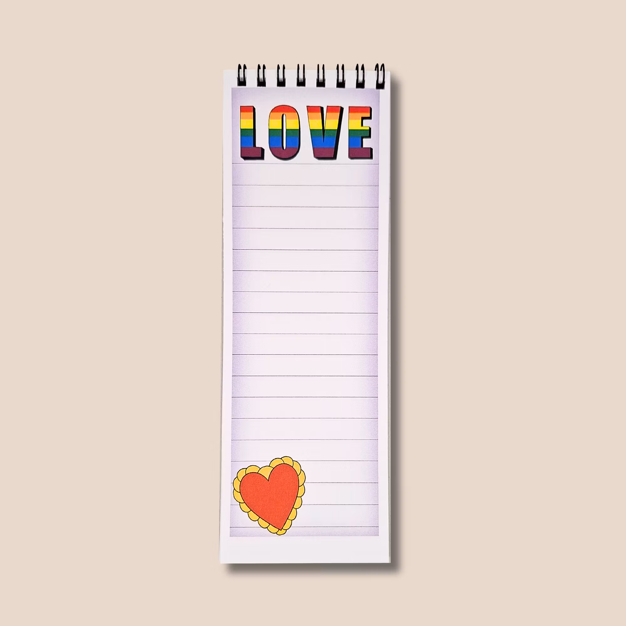 Spiralbundet anteckningsblock med texten Love.