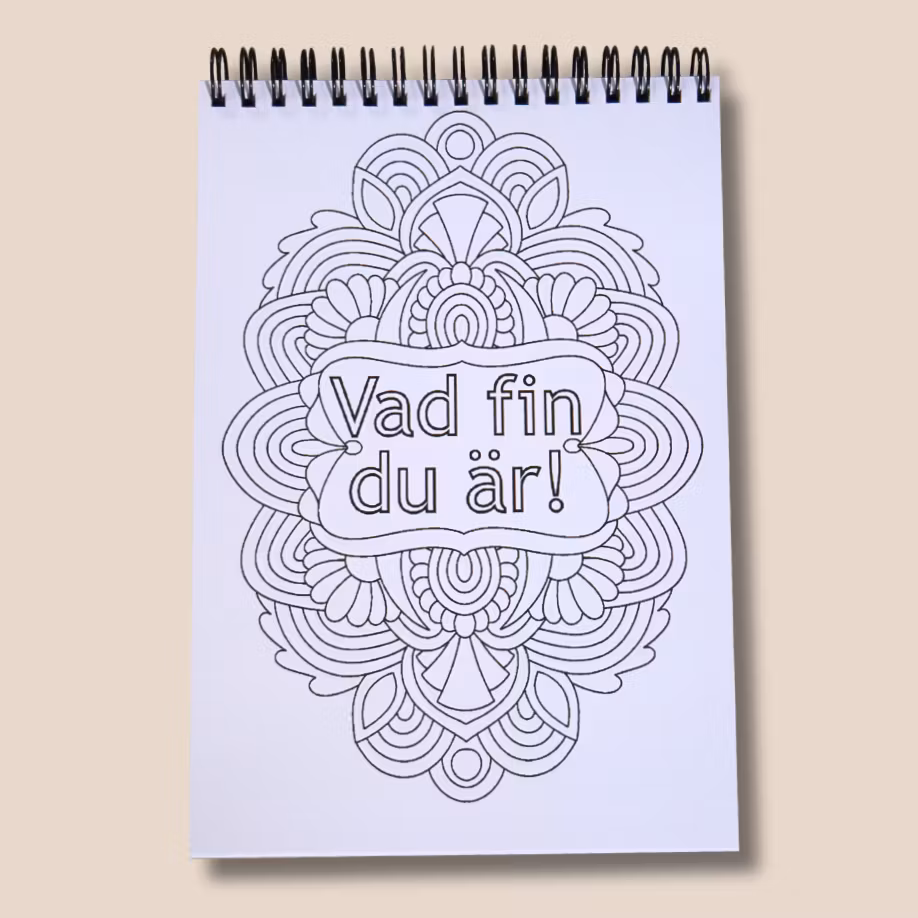 - Spiralbindningsom gör att boken ligger platt när du färglägger