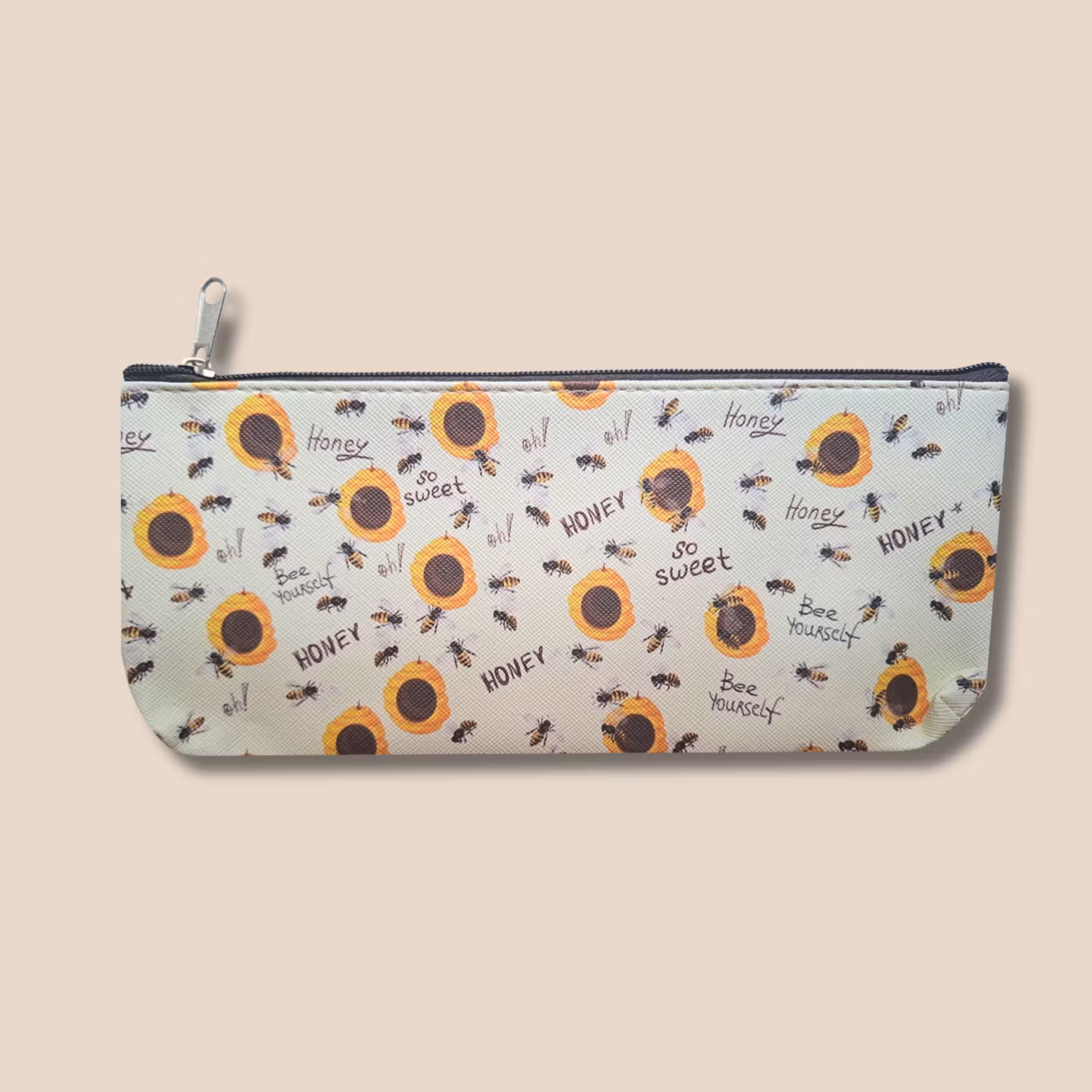 Pennfodralet öppnas och stängs med ett blixtlås.